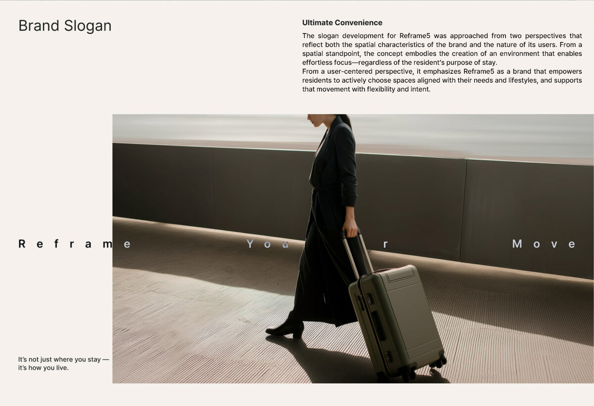 From a user-centered perspective, it emphasizes Reframe5 as a brand that empowers residents to actively choose